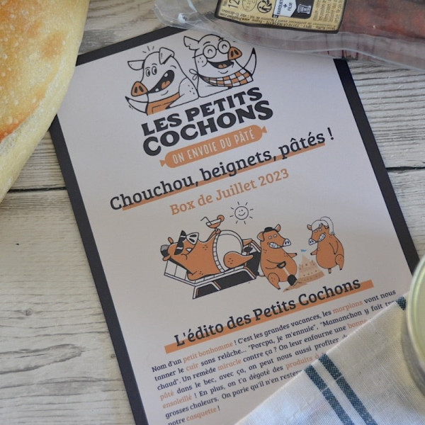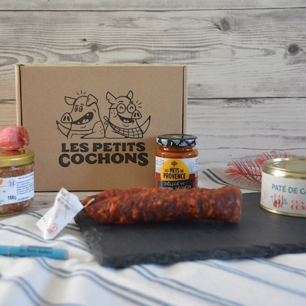 Avec la Box Apéro Un Groin de Paradis des Petits Cochons, reçois ou offre un abonnement 12 mois de boxes apéro, comprenant chacune 7 à 8 produits 100% Made in Terroir à déguster !